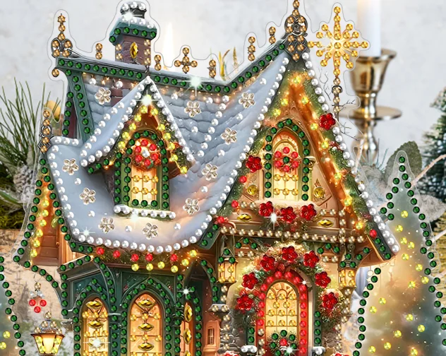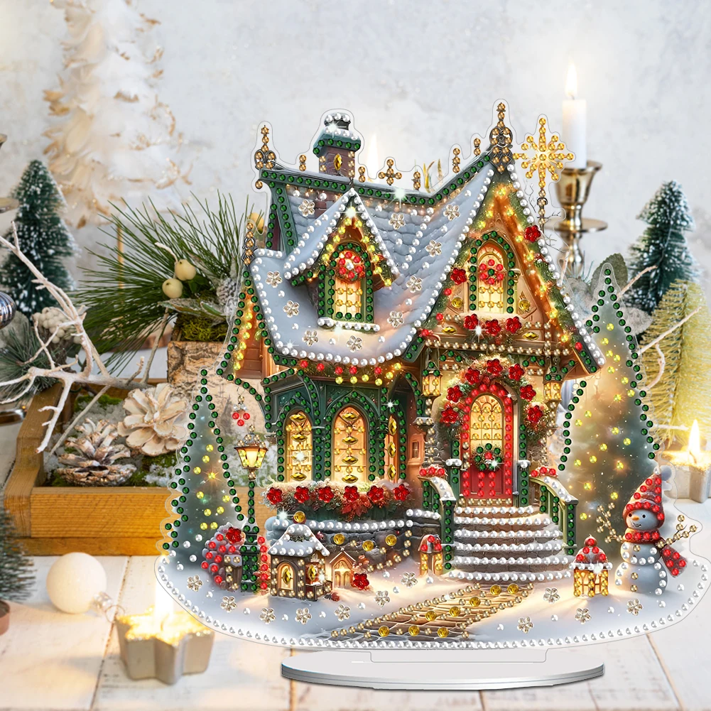 Acrylic Christmas House Colorful Light House Rhinestones Desktop Ornaments Diamond Painting Desktop Decors for Home Office Decor